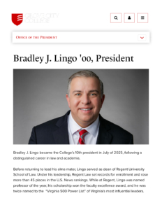 President Bradley J. Lingo ’00 – GCC website bio – Covenant Christian Academy
